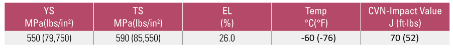 • Хорошая ударная вязкость при низкой температуре